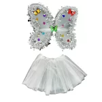 El paquete incluye todo lo necesario: 1 par de alas y 1 tutú, convirtiéndose en un kit completo para vestir a las niñas como verdaderos angelitos.