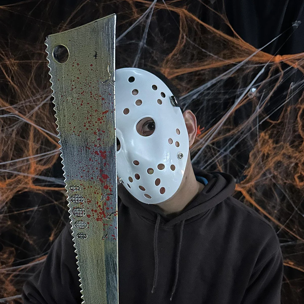 Durante Halloween, los disfraces de asesinos, reclusos o villanos suelen destacar más cuando están acompañados por accesorios que aportan un aire inquietante. Un machete de juguete con sangre falsa es el aliado perfecto para lograr ese efecto.
