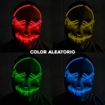 A diferencia de las máscaras tradicionales, la versión luminosa integra luces LED en zonas clave como ojos, boca y frente, lo que genera un aspecto inspirado en las películas de La Purga. Este detalle la hace especialmente atractiva para quienes buscan un disfraz auténtico y aterrador.