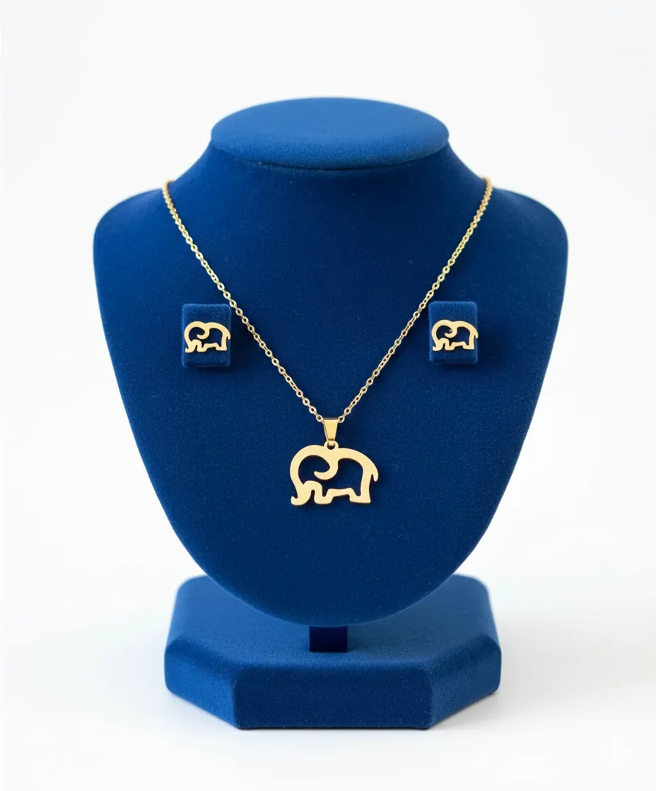 El color dorado aporta un toque cálido y sofisticado, mientras que el diseño de elefante añade un simbolismo especial de fuerza y buena fortuna. Este equilibrio entre estética y significado hace que el conjunto resalte en cualquier atuendo, sin importar la edad o el estilo de quien lo lleve.