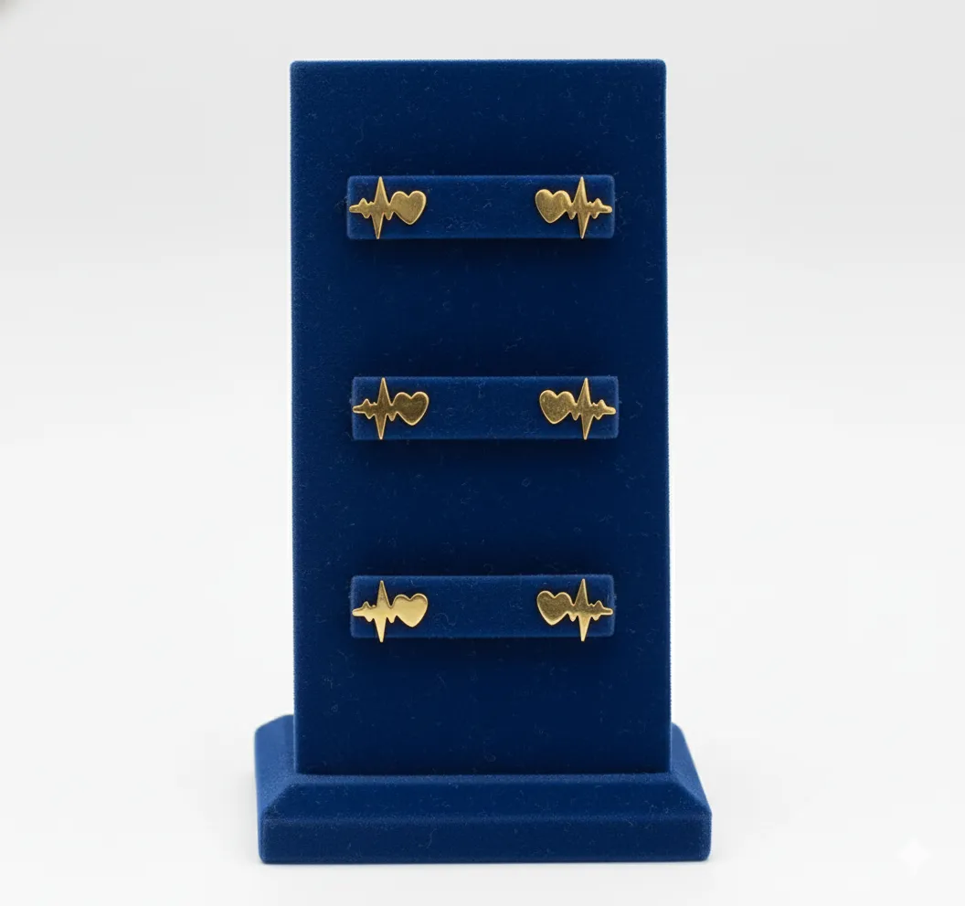 Entre las opciones más populares destacan los modelos dorados y de acero inoxidable, que combinan elegancia con durabilidad. Un ejemplo ideal son los paquetes de 3 pares de aretes en forma de corazón con signos vitales, una propuesta moderna y llamativa para quienes buscan estilo y practicidad al mismo tiempo.