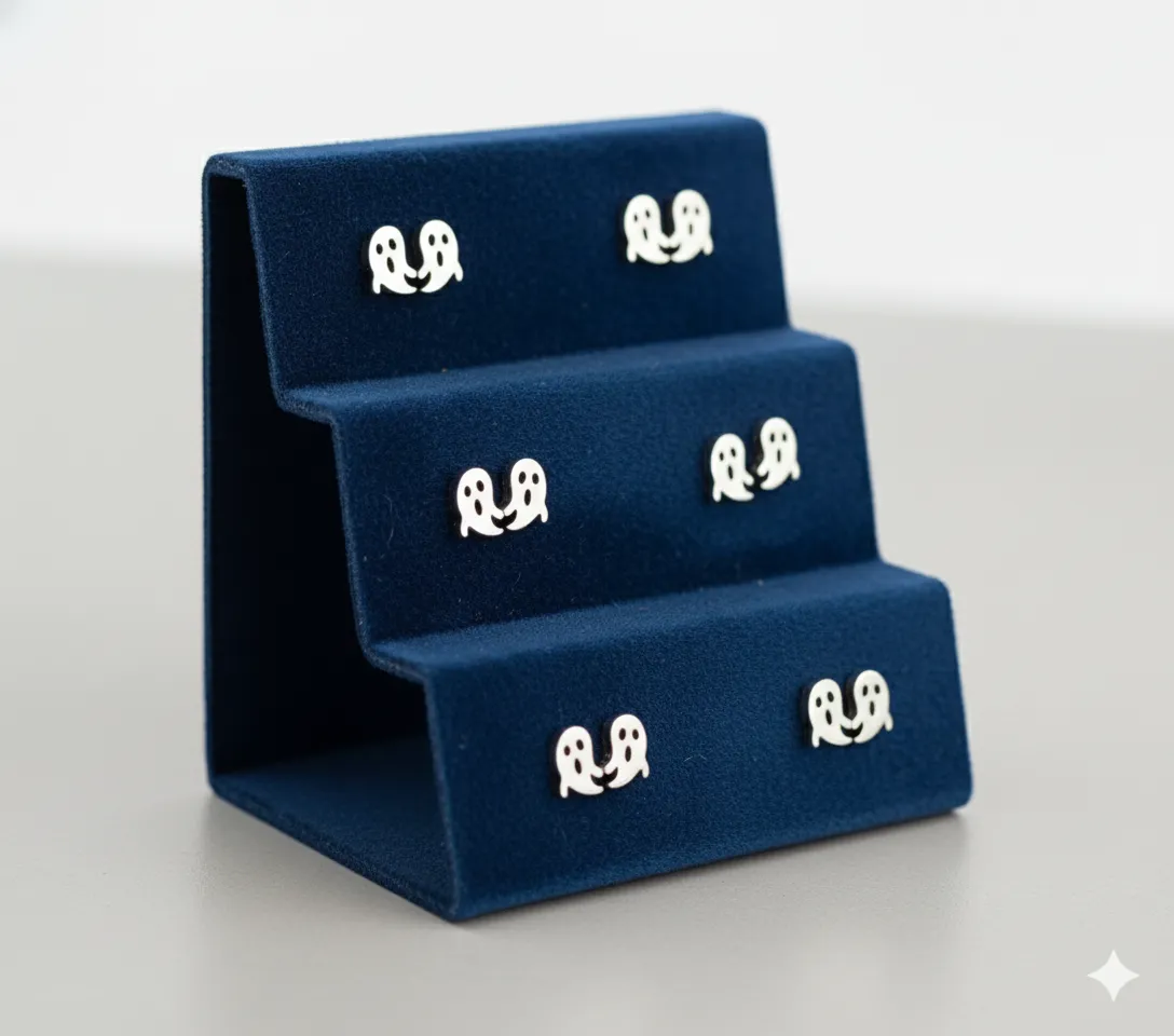 Aretes Topitos Fantasmas Plateados x3 Pares