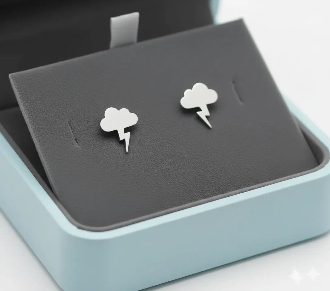 El diseño que incluye tres pares de topitos con forma de tormenta eléctrica resulta aún más especial, ya que permite cambiar de estilo según la ocasión o el estado de ánimo. Esta versatilidad los convierte en una joya perfecta para quienes disfrutan variar sus accesorios sin perder coherencia estética.