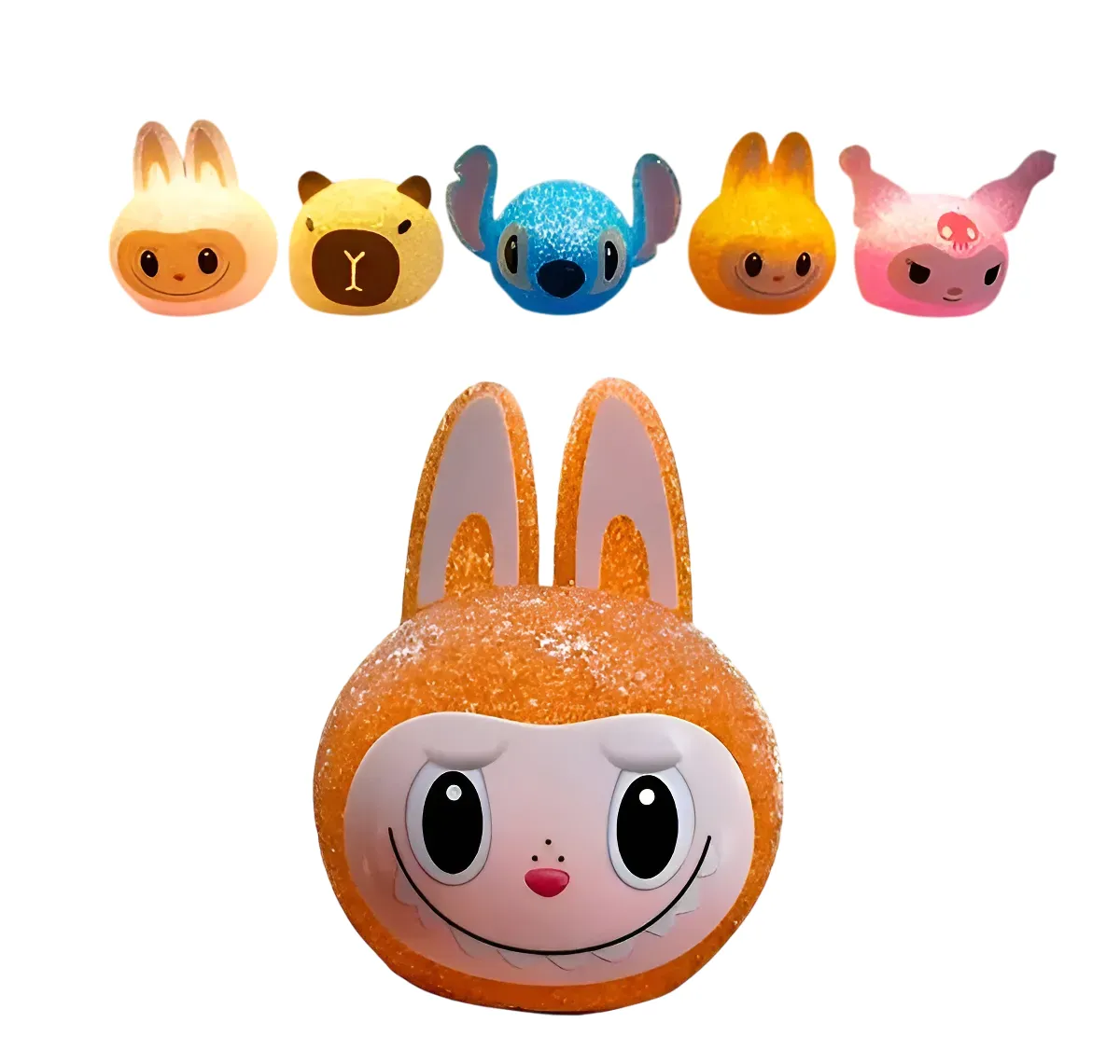 La lámpara de noche es un accesorio kawaii para la habitación de los niños o jóvenes que vienen en lindos diseños, cuentas con la cabeza de Stitch, Kuromi, Hello Kitty, Capibara o Labubu. A diferencia de las lámparas comunes, esta viene en material de silicona amigable para los niños y fuera de peligro como el vidrio.