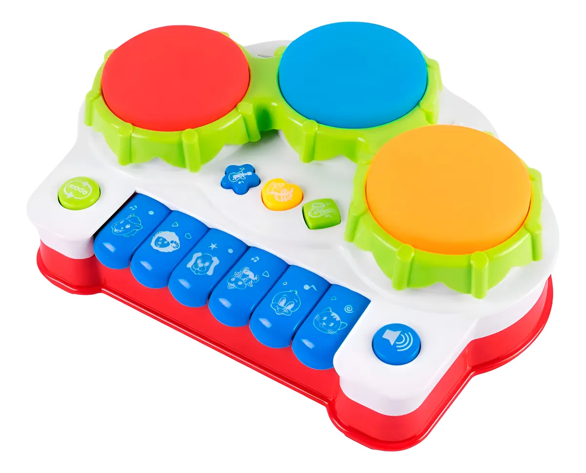 Además, la presencia del tambor con luces convierte la experiencia en un juego interactivo que despierta la curiosidad y refuerza la conexión del niño con la música.