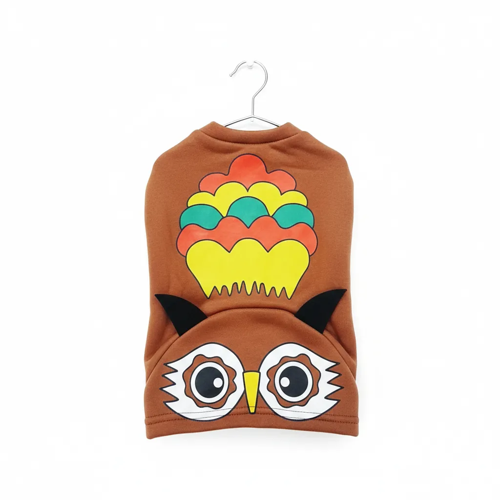 El diseño de búho con capucha y mangas es ideal para combinar estilo y funcionalidad. Su tela de algodón color café no solo es suave, sino que además permite libertad de movimiento, lo cual es algo que mi mascota realmente agradeció cuando lo usó varias veces.