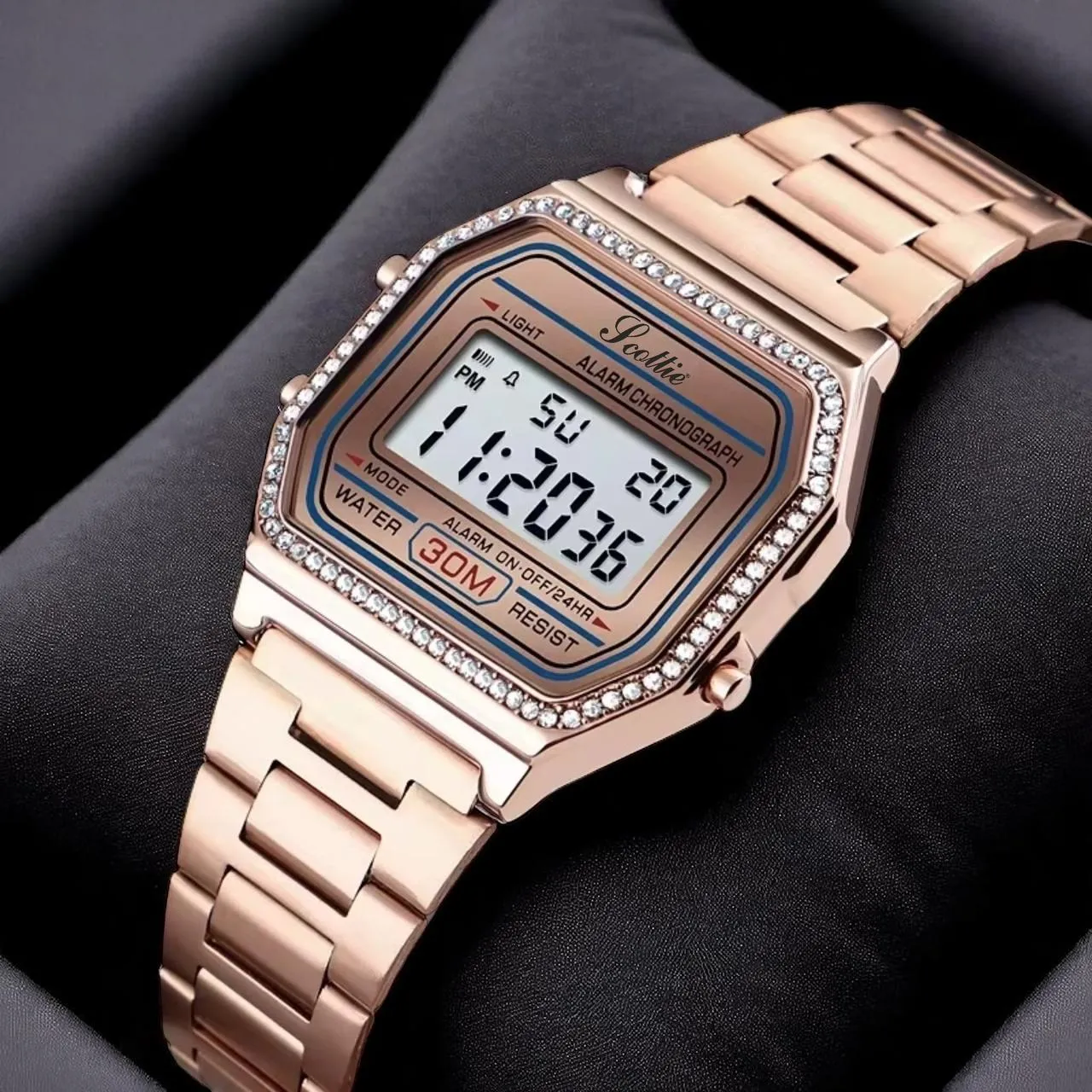 Cuando eliges un modelo con diseño retro inspirado, detalles brillantes, acero inoxidable resistente al agua y funciones digitales completas, estás invirtiendo en estilo y practicidad.